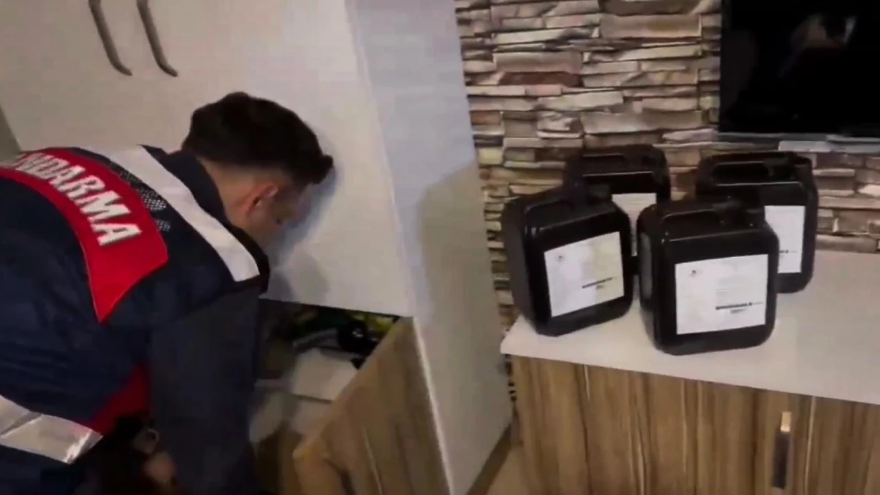 MERSİN'DE JANDARMA EKİPLERİ SAHTE İÇKİ ÜRETİMİ VE TİCARETİNİ YAPAN 2 ŞÜPHELİYİ YAKALADI. OPERASYONDA, BİN 110 LİTRE SAHTE İÇKİ İLE 20 LİTRE ETİL ALKOL ELE GEÇİRİLDİ.