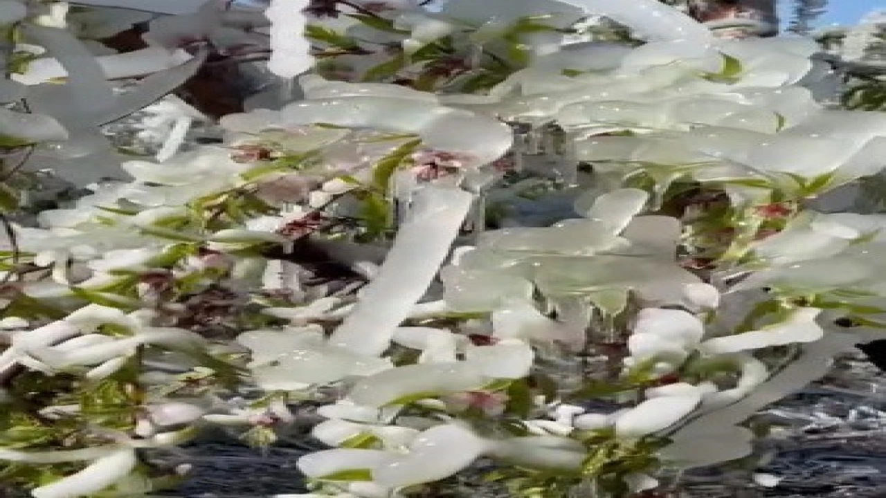 MERSİN'DE ŞEFTALİ AĞAÇLARI BUZ TUTTU
