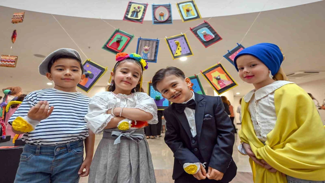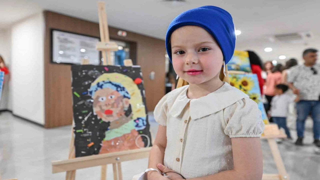 Miniklerin ortaya çıkardığı harika eserler, belediye binasında sergileniyor
