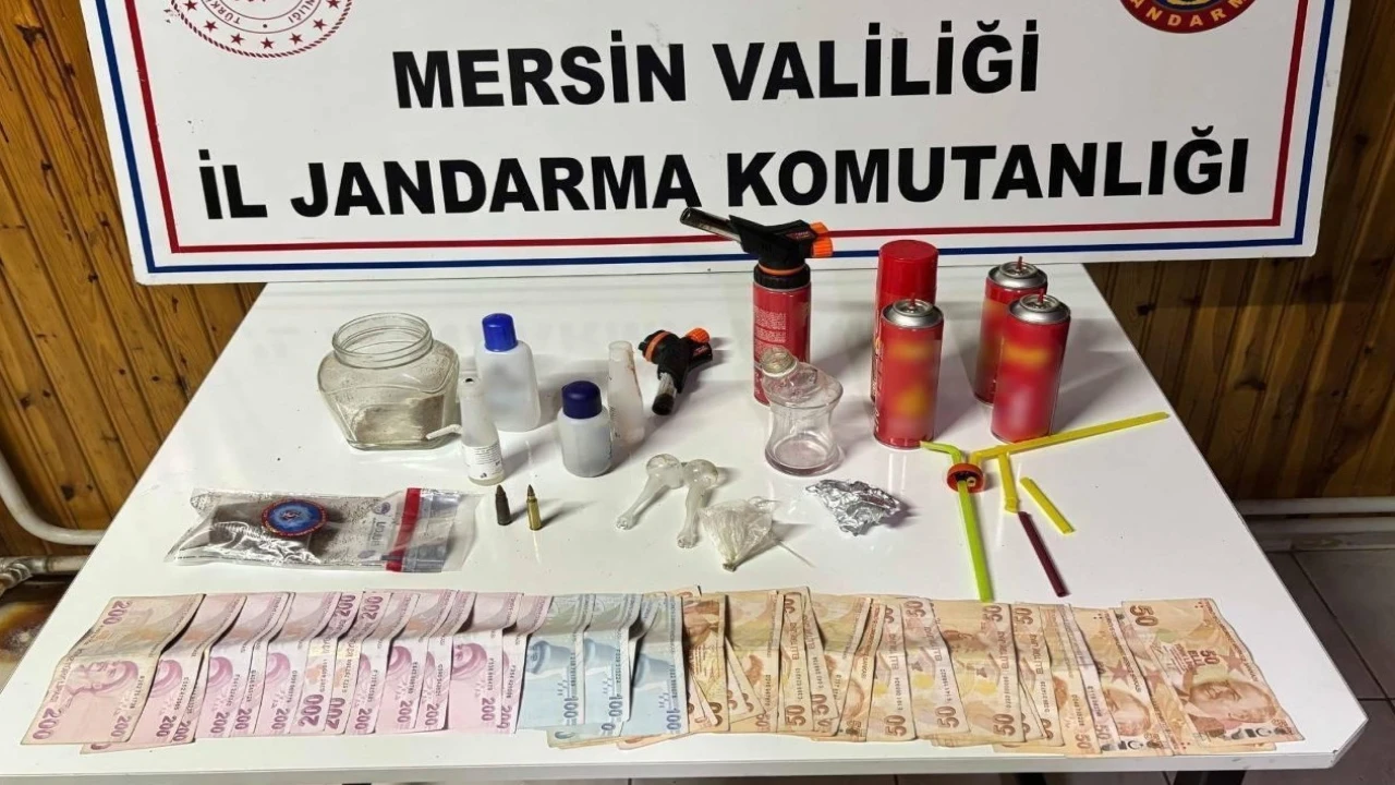 MERSİN'DE JANDARMANIN UYUŞTURUCU SATICILARINA YÖNELİK DÜZENLEDİĞİ OPERASYONDA GÖZALTINA ALINAN 7 KİŞİDEN 5'İ TUTUKLANDI. OPERASYONDA, 448 GRAM METAMFETAMİN, 70 GRAM UÇ, 3 UYUŞTURUCU HAP, 1 TABANCA, 2 AV TÜFEĞİ, 264 TABANCA FİŞEĞİ, 1 BIÇAK, 14 UYUŞTURUCU MADDE KULLANMA APARATI İLE 5 BİN 600 TL PARA ELE GEÇİRİLDİ.