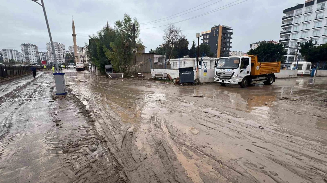 Mersin’de dün etkili olan kuvvetli yağışların ardından kent genelinde sel ve taşkınlar meydana geldi. Bazı bölgelerde dere yataklarının taşmasıyla oluşan su birikintileri ve çamur, günlük yaşamı olumsuz etkilerken, yağışların durmasının ardından su tahliyesi ve temizlik çalışmaları hızla başlatıldı. Sel ve taşkınların ardından sahaya çıkan ekipler, suyun tahliyesinin yanı sıra çamur, atık ve sürüklenen malzemelerin temizlenmesi için geniş çaplı çalışma yürüttü. Mezitli ilçesinde ise Tece Mahallesi’nden geçen derede bulunan yaya köprüsü selin etkisiyle yıkıldı. Sel sonrası yıkılan köprü ile su basan siteler dronla görüntülendi. Bölgede ekipler temizlik çalışmalarını sürdürürken, bazı vatandaşların akıntıyla sahile sürüklenen odunları topladığı görüldü. Bölgede sel sırasında bazı araçların suya kapıldığı noktada da temizlik ve güvenlik çalışmalarının devam ediyor.