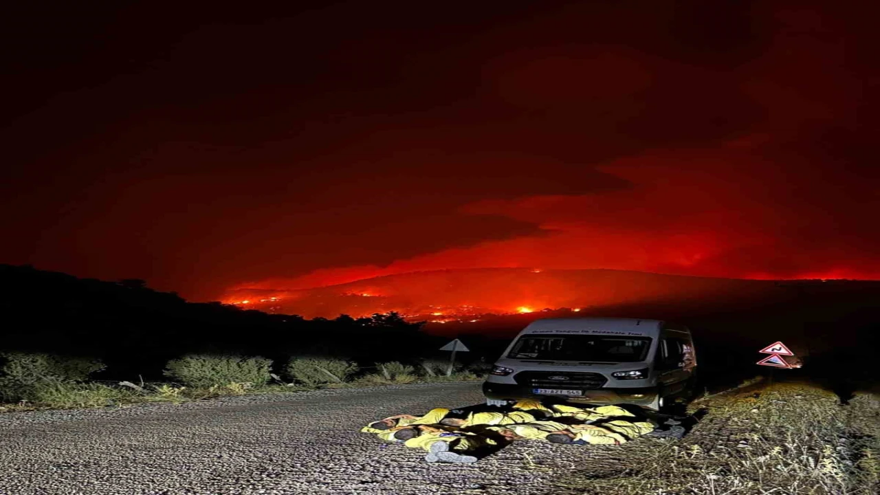 Öte yandan gece yorgun düşen bazı orman ekipleri ise yolda yatarak dinlendi. O anın fotoğrafı dikkat çekti.