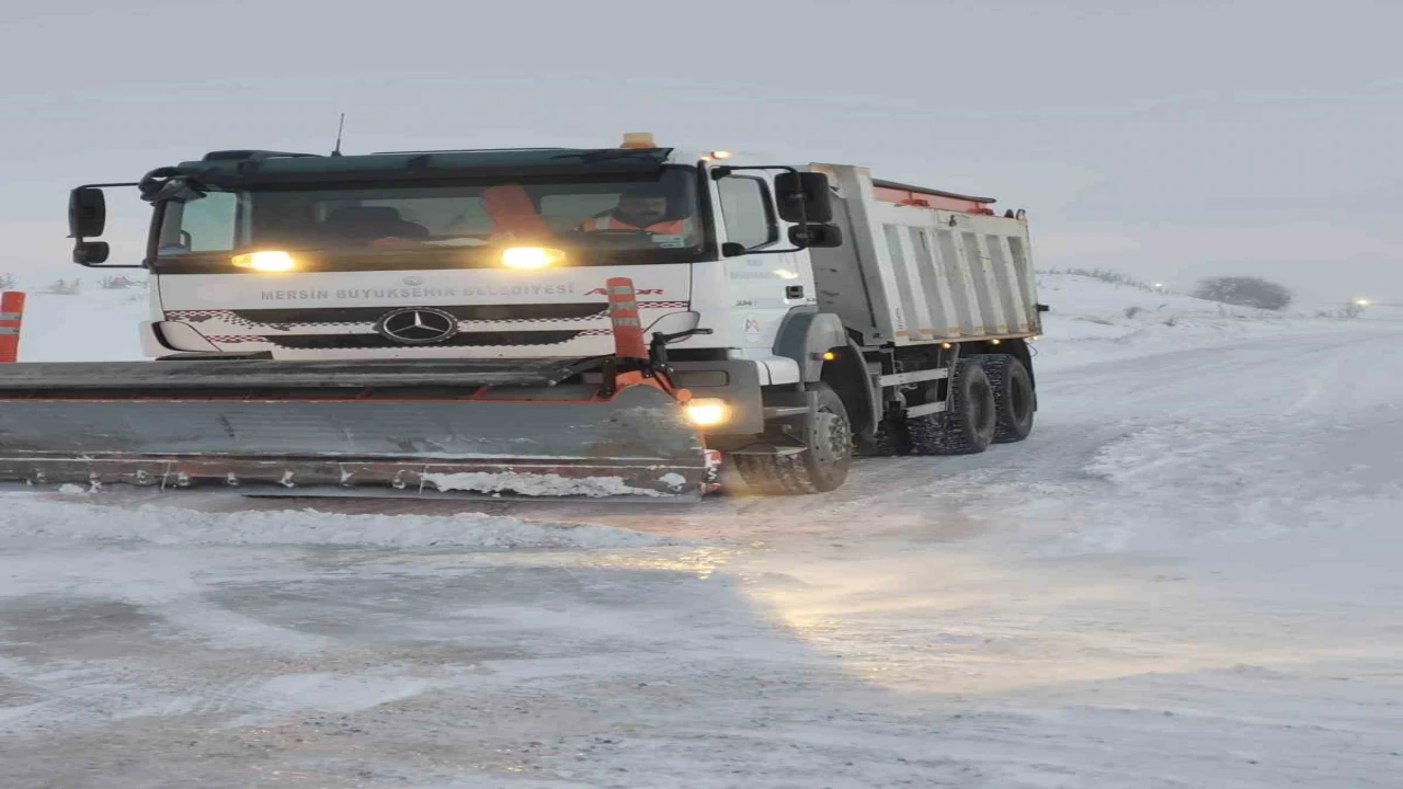 Mersin Büyükşehir Belediyesi ekipleri, Mut ilçesinin yüksek kesimlerinde etkili olan kar yağışı sonrasında kar küreme ve tuzlama çalışmaları yaparak kırsalda yolları açık tutmaya çalışıyor.