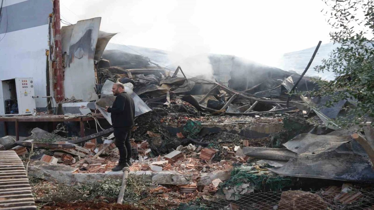 Antalya’da gece saatlerinde meyve-sebze paketleme fabrikasında çıkan yangın yaklaşık bin 600 metrekarelik alanı küle çevirdi. Alevlerin arasında kalan fabrika çatısı çökerken, yangın sabahın ilk ışıklarına kadar süren çalışmalar sonucunda kontrol altına alındı. Arazi sahibi Mehmet Aslan, "Şükür can kaybı yok, olan mala oldu. 10-15 milyon TL belki daha fazla bir maddi kayıp var" dedi.