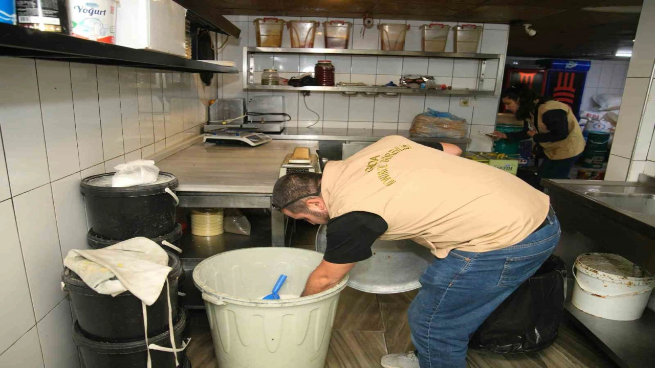 Adana’da bir tatlıcıda denetim yapan zabıta ve İlçe Tarım Müdürlüğü ekipleri, üretim hanesinde böcekler çıkan işletmeye hijyen kurallarına uymadığı için 105 bin TL ceza kesti.