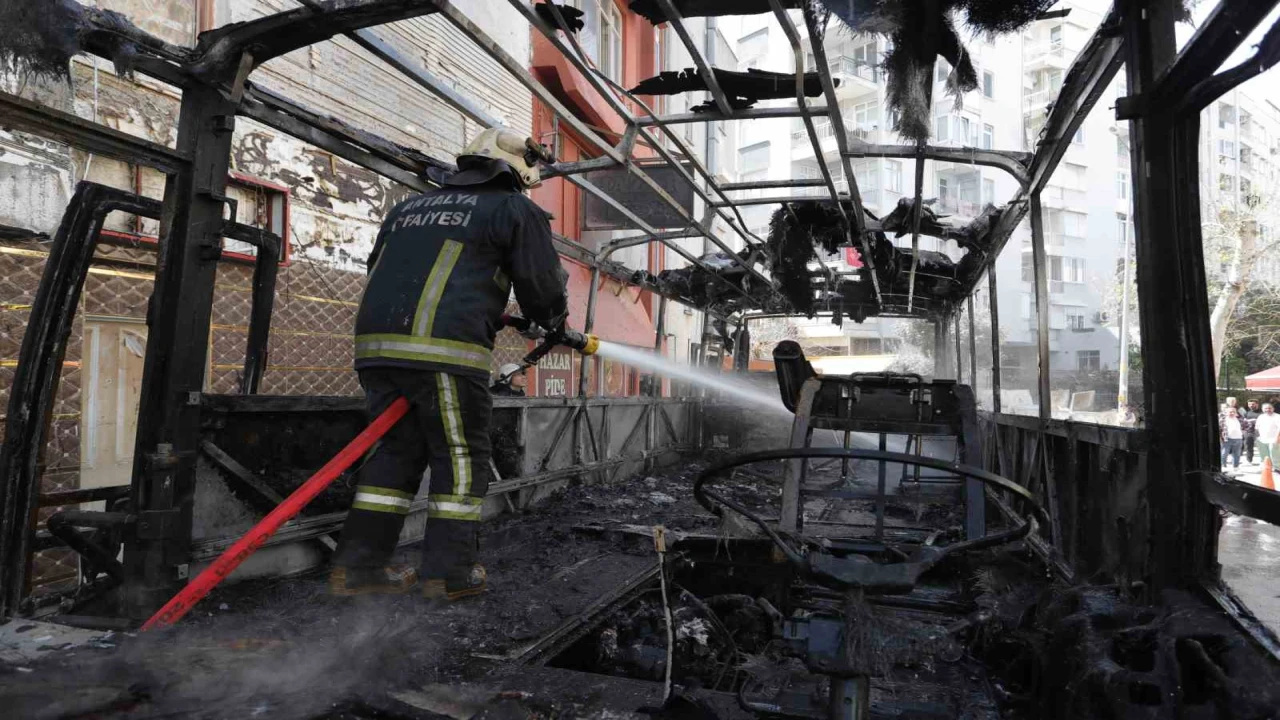 Olay, Muratpaşa ilçesi Yüksekalan Mahallesi 504 sokak üzerinde meydana geldi. Sokak üzerinde park halinde bulunan plakasız ve çekme belgeli midibüs henüz belirlenemeyen bir nedenle yanmaya başladı. Aracın yandığını gören apartman sakinleri ve vatandaşlar durumu 112 Acil çağrı Merkezi’ne bildirirken, alevler kısa sürede büyüdü. Sokağa dökülen mahalle sakinleri aracın yanışını endişeli gözlerle izledi. Kısa sürede olay yerine gelen itfaiye ekiplerinin müdahalesi ile yangın çevredeki diğer araç ve hemen bitişiğindeki apartmana sıçramadan söndürüldü.