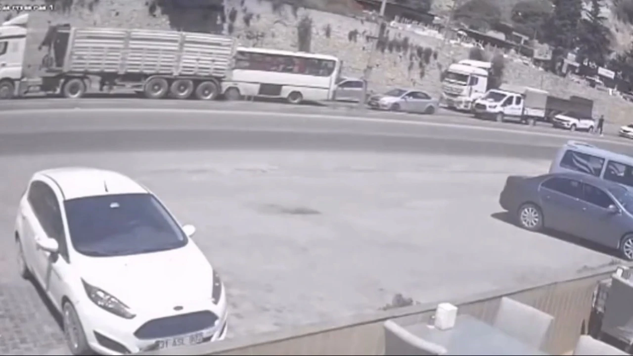 Hatay’ın Belen ilçesinde midibüsün tırla çarpıştığı kazada 2 kişi yaralandı, o anlar kameraya yansıdı.