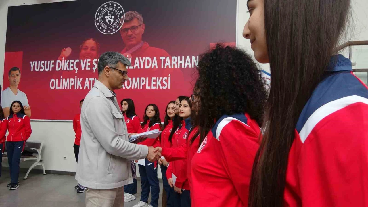 Mersin’de devam eden Atıcılık Türkiye Şampiyonası’na katılan milli sporcu Yusuf Dikeç, genç sporculara hediyeler dağıttı