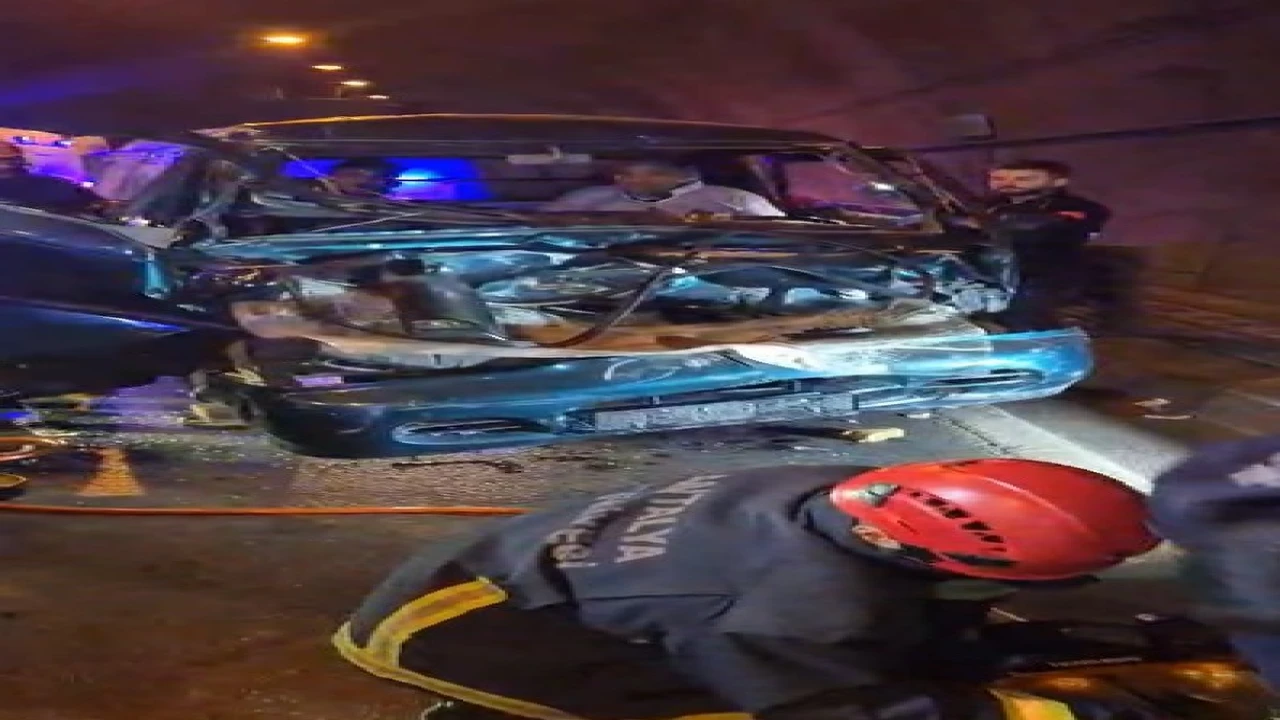 Antalya’nın Alanya ilçesinde ikinci tünelde seyir halinde bulunan minibüs, direksiyon hâkimiyeti kaybederek aynı güzergahtaki kepçeyle çarpıştı.