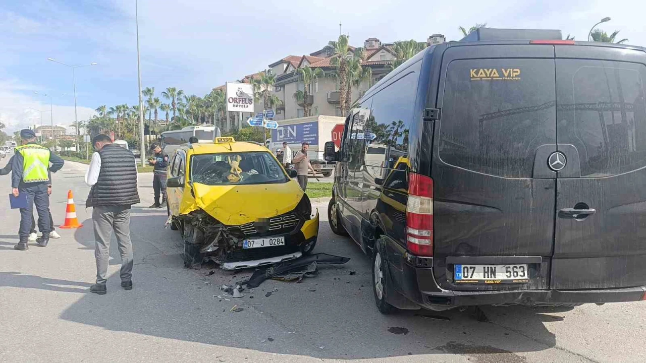 Antalya’nın Manavgat ilçesinde ticari taksi ile minibüsün çarpışması sonucu meydana gelen kazada, taksi şoförü ve 2 İngiliz turist yaralandı. Kaza güvenlik kamerasına saniye saniyesine yansıdı.