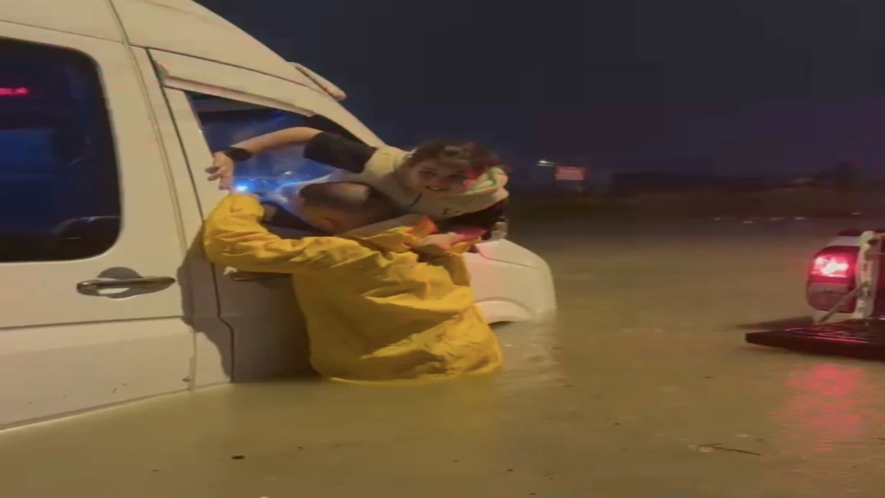 Adana’da etkili olan şiddetli sağanak yağışta minibüste mahsur kalan 2’si çocuk 4 kişi, itfaiye ekipleri tarafından kurtarıldı. O anlar saniye saniye görüntülendi.