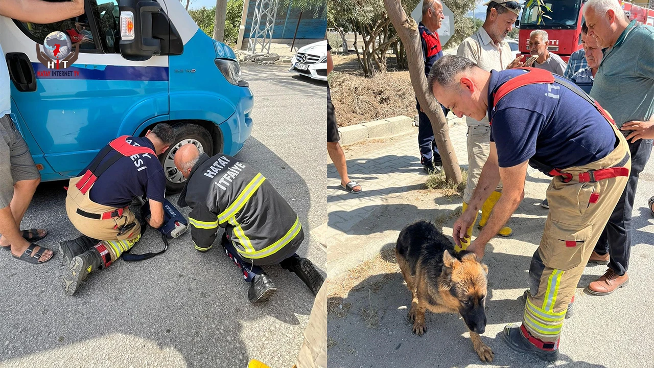 HATAY (İHA) - Hatay'ın Samandağ ilçesinde minibüsün altında sıkışıp mahsur kalan köpek, itfaiye ekipleri tarafından kurtarıldı.