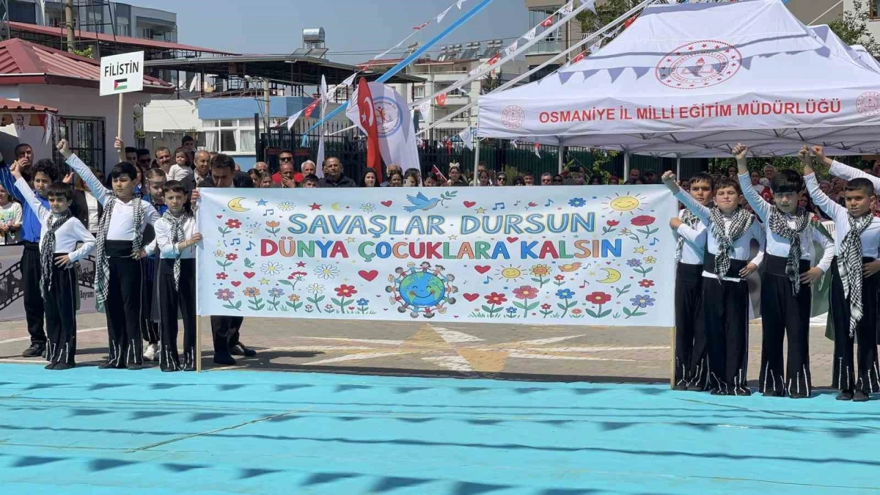 Osmaniye’de, 23 Nisan Ulusal Egemenlik ve Çocuk Bayramı düzenlenen etkinliklerle coşku içinde kutlandı. Öğrencilerin farklı ülkelerin kültürlerini yansıtan halk dansları gösterileri izleyiciler tarafından tam not alırken Filistin halk dansları gösterisinin sonunda açılan "Savaşlar dursun dünya çocuklara kalsın" yazılı pankart duygu dolu anlar yaşattı.