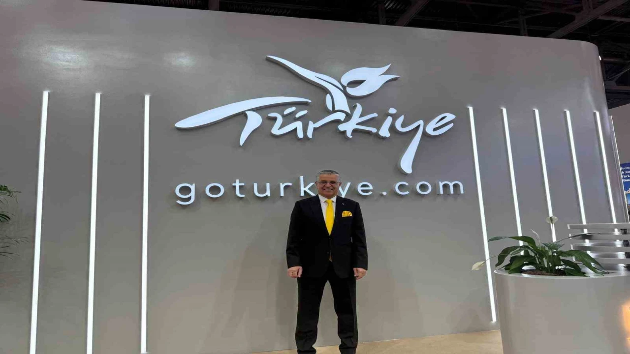 KEMER BELEDİYE BAŞKANI NECATİ TOPALOĞLU, MOSKOVA ULUSLARARASI TURİZM VE SEYAHAT FUARI'NDA (MITT) KEMER'İN TANITIMINI YAPIYOR.