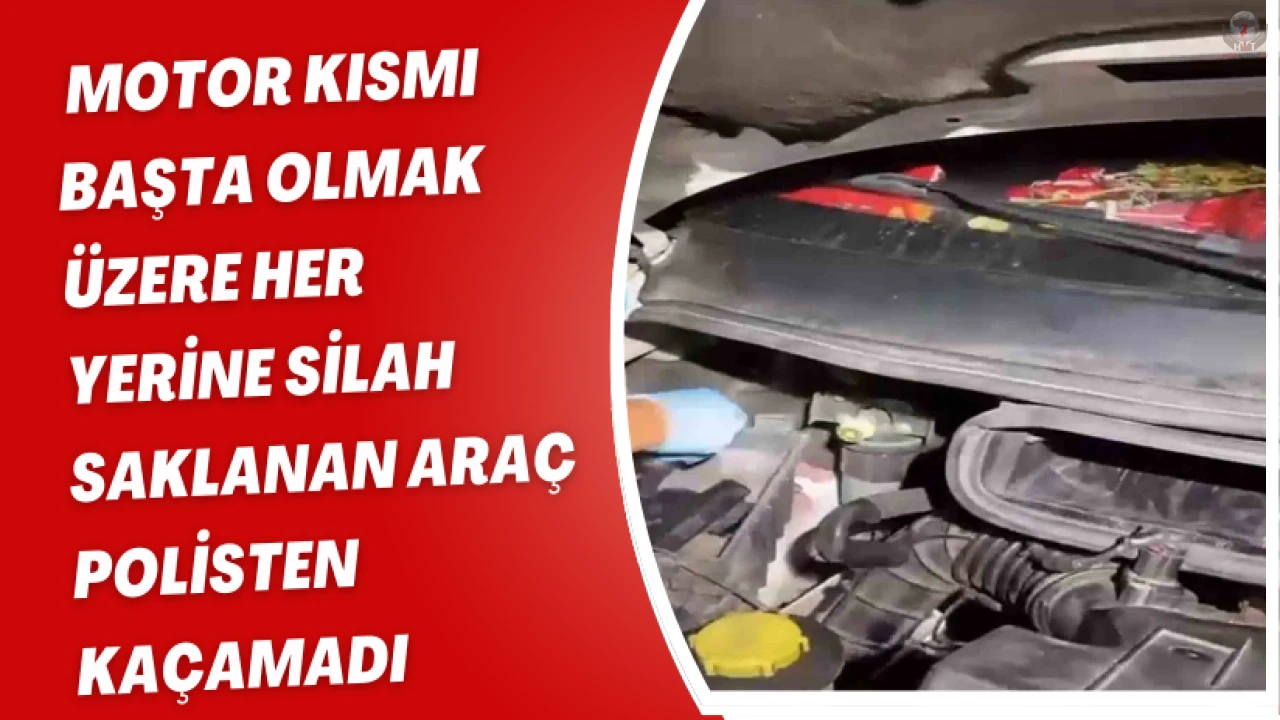 Aracın motor kısmına saklanan silahların yer aldığı bölümse dikkat çekti.