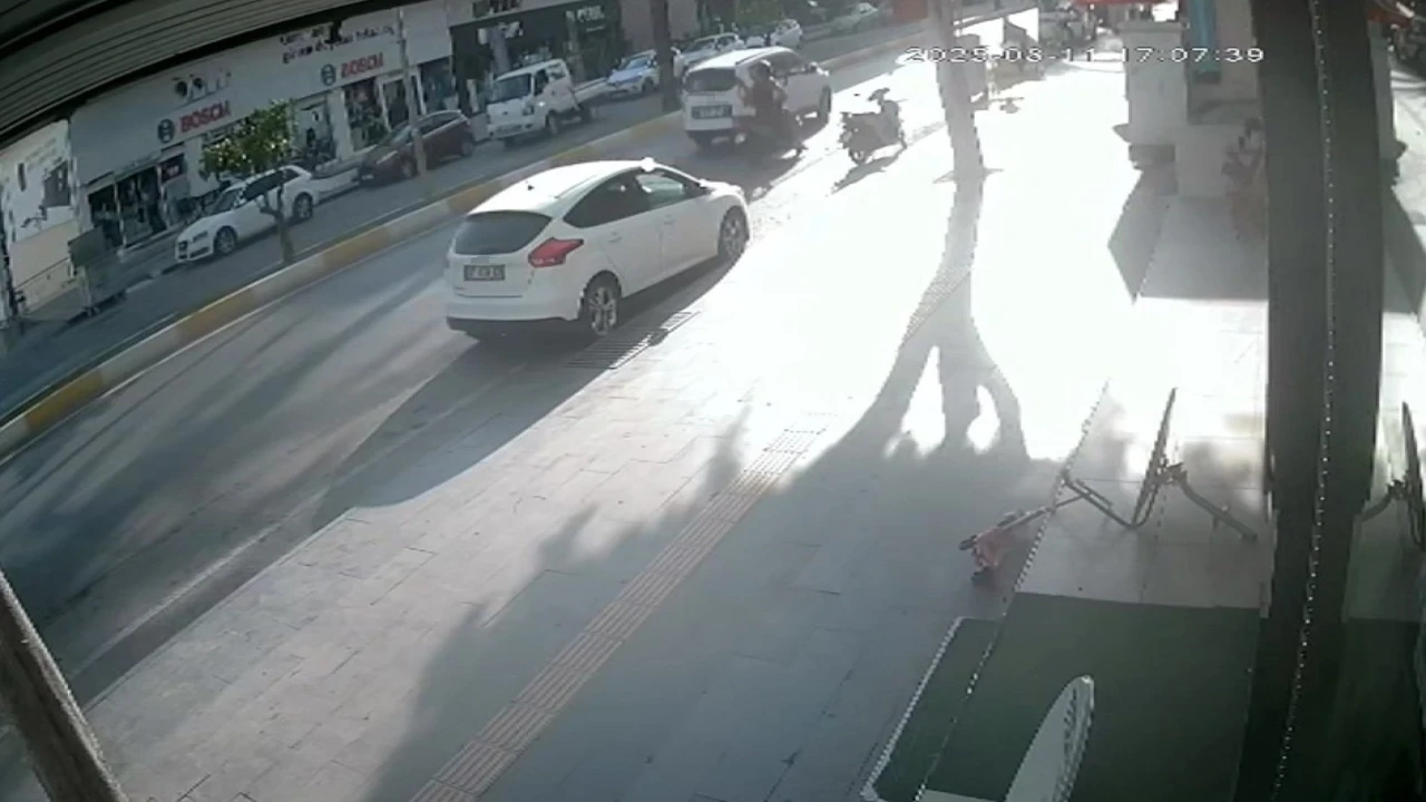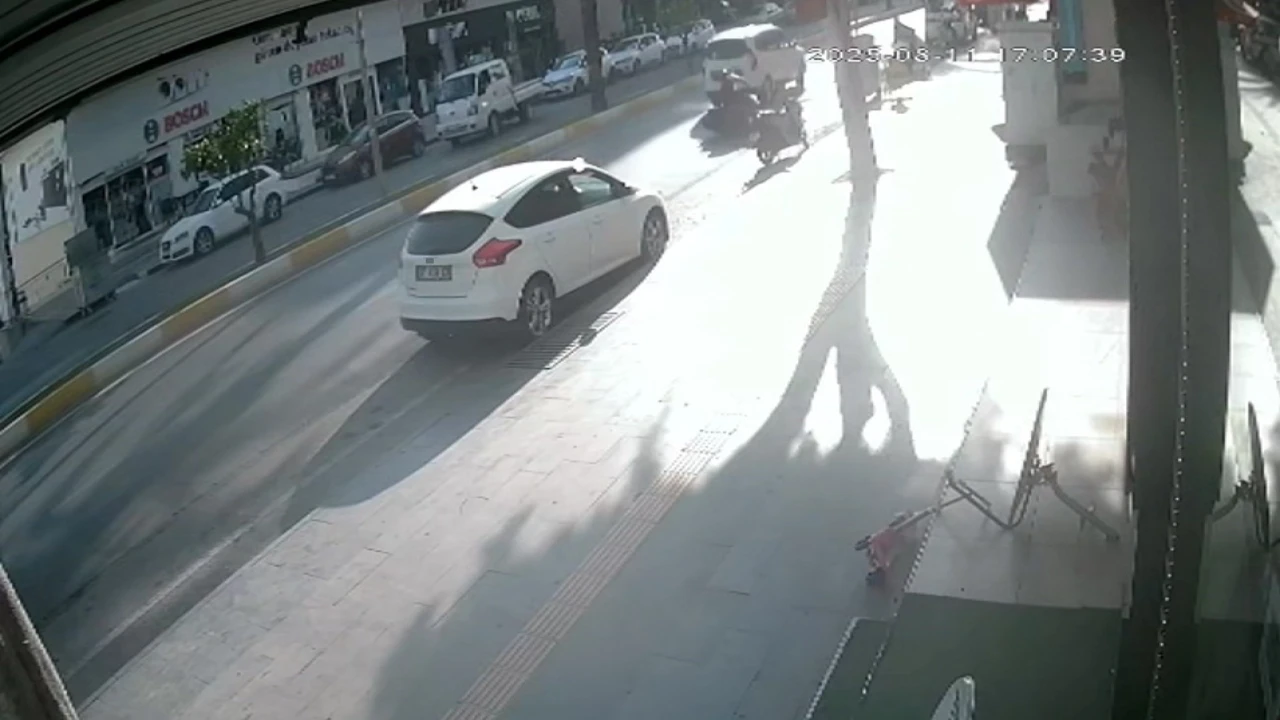 Kaza anı çevrede bulunan bir iş yerinin güvenlik kamerasına yansırken görüntülerde elektrikli bisikletin hafif ticari aracın sağ tarafında ilerlediği ve aracın arka kısmına temas ederek devrildiği, kazayı fark etmeyen hafif ticari aracın ise durmayarak yoluna devam ettiği görüldü.