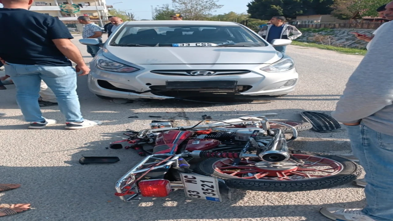 Kaza, ilçeye bağlı Mithatpaşa Mahallesi 1936 sokakta meydana geldi. Alınan bilgiye göre, G.E. idaresindeki 33 CSS 13 plakalı otomobil ile H.S. yönetimindeki 33 MC 3521 plakalı motosiklet çarpıştı. Kazada motosiklet otomobilin altına girdi sürücü ise yana düşerek yaralandı. Yaralı olay yerine sevk edilen ambulansla Tarsus Devlet Hastanesine kaldırıldı.