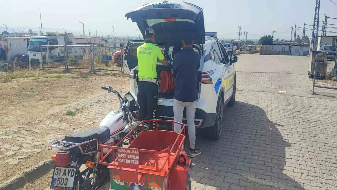 Görüntüler üzerine harekete geçen Hatay İl Emniyet Müdürlüğü Trafik Şube Amirliği ekipleri motosikleti ve sürücüyü kısa sürede tespit etti.