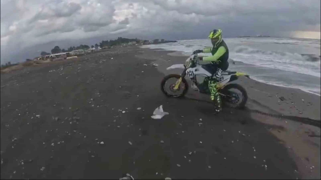 ERZİN İLÇESİ BURNAZ SAHİLİNDE ARKADAŞIYLA MOTOSİKLETLE GEZİNEN MUSTAFA EROĞLU, YARALI BİR MARTININ UÇAMADIĞINI FARK ETTİ.