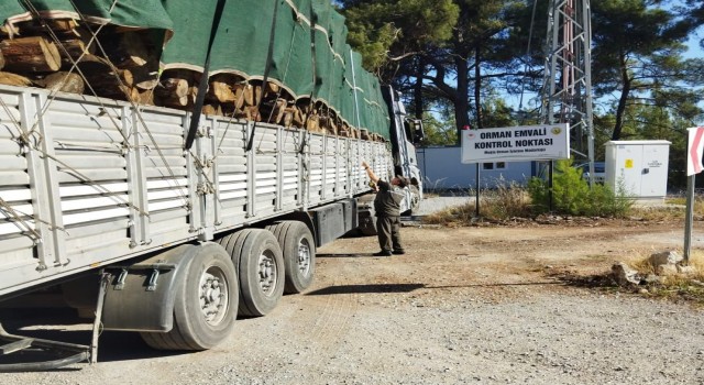 Muğla Orman İşletme Müdürlüğü Toplu Koruma ekipleri, orman ürünlerinin kontrolü için "Orman Emvali Kontrol Noktalarında araçları sıkı bir denetimden geçiriyor.