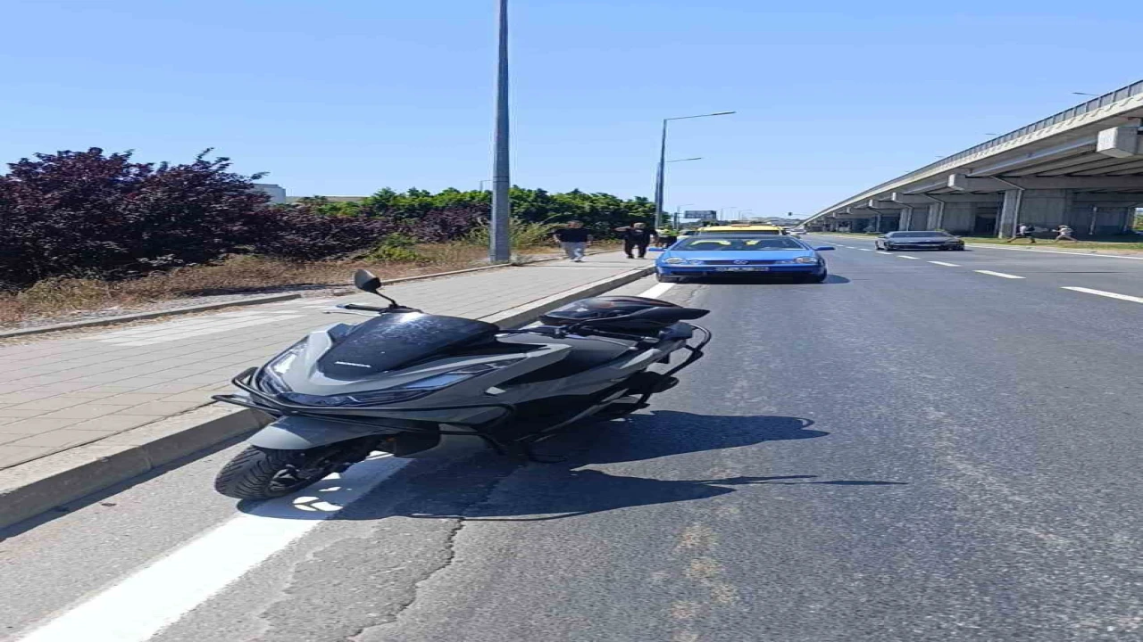 Manavgat’ta yol kenarındaki turisti almak için aniden duran ve geri geri gelen ticari taksiye motosiklet çarptı.