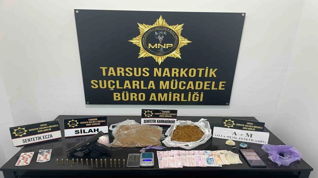 Alınan bilgiye göre, İl Emniyet Müdürlüğü Narkotik Şubesi ekipleri, son 10 gün içerisinde kent genelinde uyuşturucu madde kullanan ve ticaretini yapanlara yönelik birçok çalışma yaptı. Ekiplerin çalışmasında Mersin merkezinin yanı sıra Tarsus ve Erdemli ilçelerinde yapılan operasyonlarda sentetik ecza olarak bilinen 10 bin 867 adet hap, 3 kilo 600 gram bonzai, 296 adet uyuşturucu hap, 155 gram metemfetamin, 114 gram esrar ile 5 tabanca ele geçirildi.