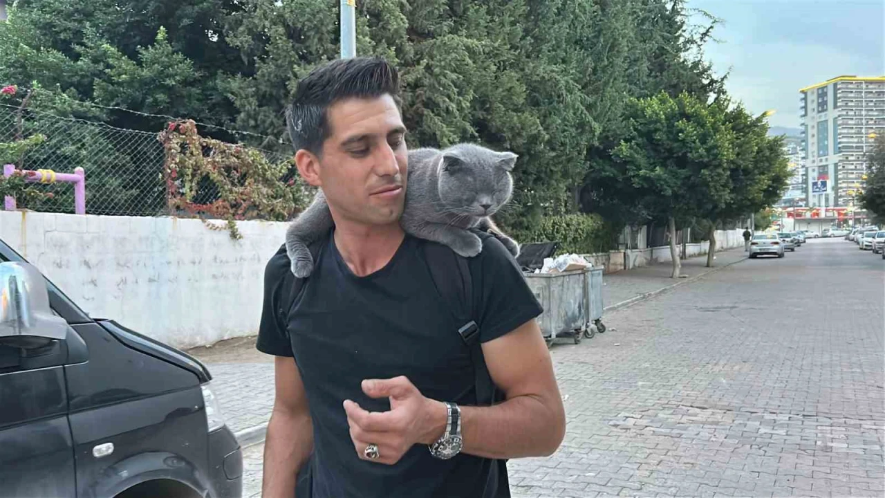 HATAY (İHA) - HATAY’IN İSKENDERUN İLÇESİNDE YAŞAYAN 32 YAŞINDAKİ MUSTAFA ŞİMŞEK, YAKLAŞIK BİR YILDIR "DUMAN" İSİMLİ KEDİSİYLE OMUZ OMUZA GEZİYOR. ŞİMŞEK’İN SADIK DOSTU DUMAN, HEM ŞEHİR İÇİNDE HEM DE ŞEHİRLER ARASI YOLCULUKLARDA SAHİBİNİN OMZUNDAN İNMİYOR.