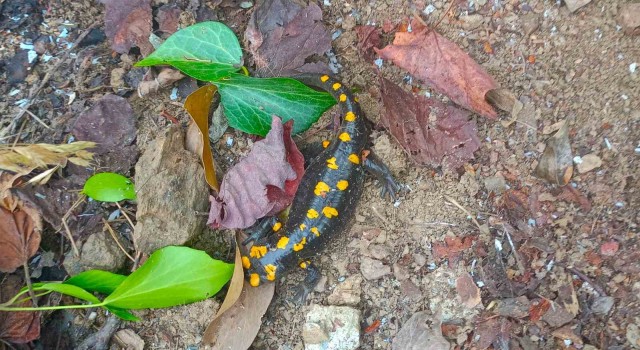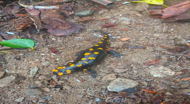 Nesli tükenme tehlikesi altında olan sarı benekli semender, Hatay’ın Dörtyol ilçesinde görüldü.