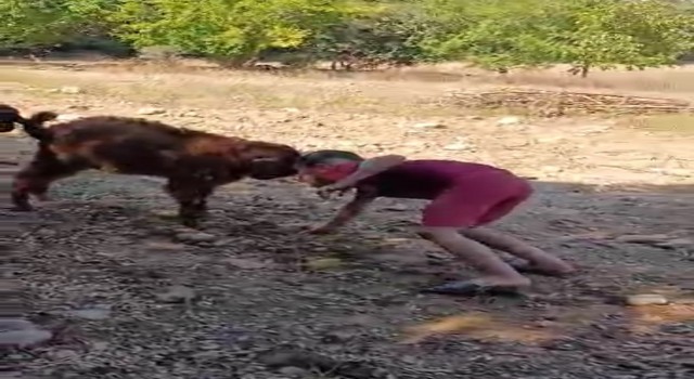 KE’NİN TAPAN BÖLGESİNDE YAŞAYAN MUSTAFA ÖZSOY’UN OĞLAK İLE OYUNU GÜLÜMSETTİ.