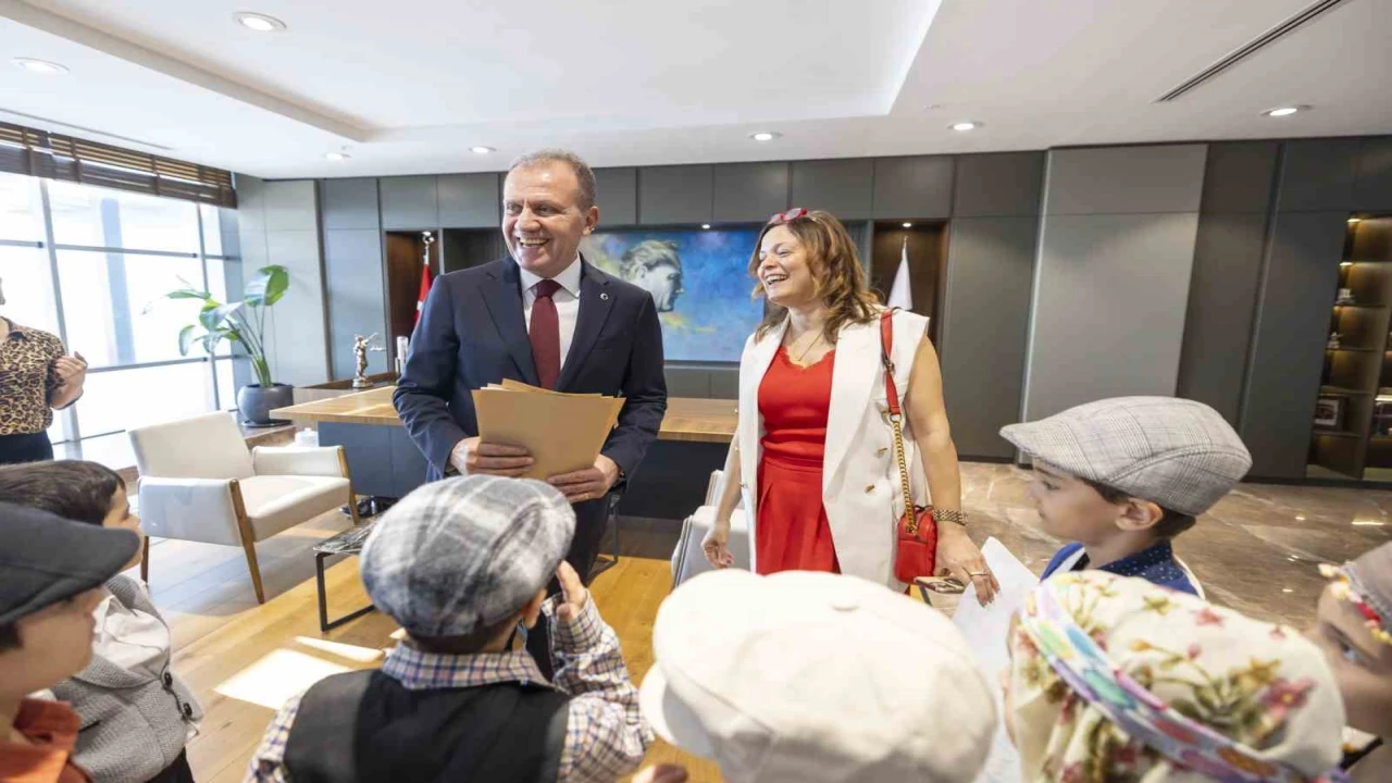 Cumhuriyetin 102’nci yılı kutlamaları kapsamında Dr. Kamil Tarhan İlkokulu öğrencileri Türkiye Belediyeler Birliği (TBB) Başkan Vekili ve Mersin Büyükşehir Belediye Başkanı Vahap Seçer’i ziyaret etti. Öğrenciler, hem renkli hem de duygusal anlara sahne olan buluşmada, kendi hazırladıkları ’cumhuriyet ilan edildi’ temalı gazetelerini Başkan Seçer’e sundu.