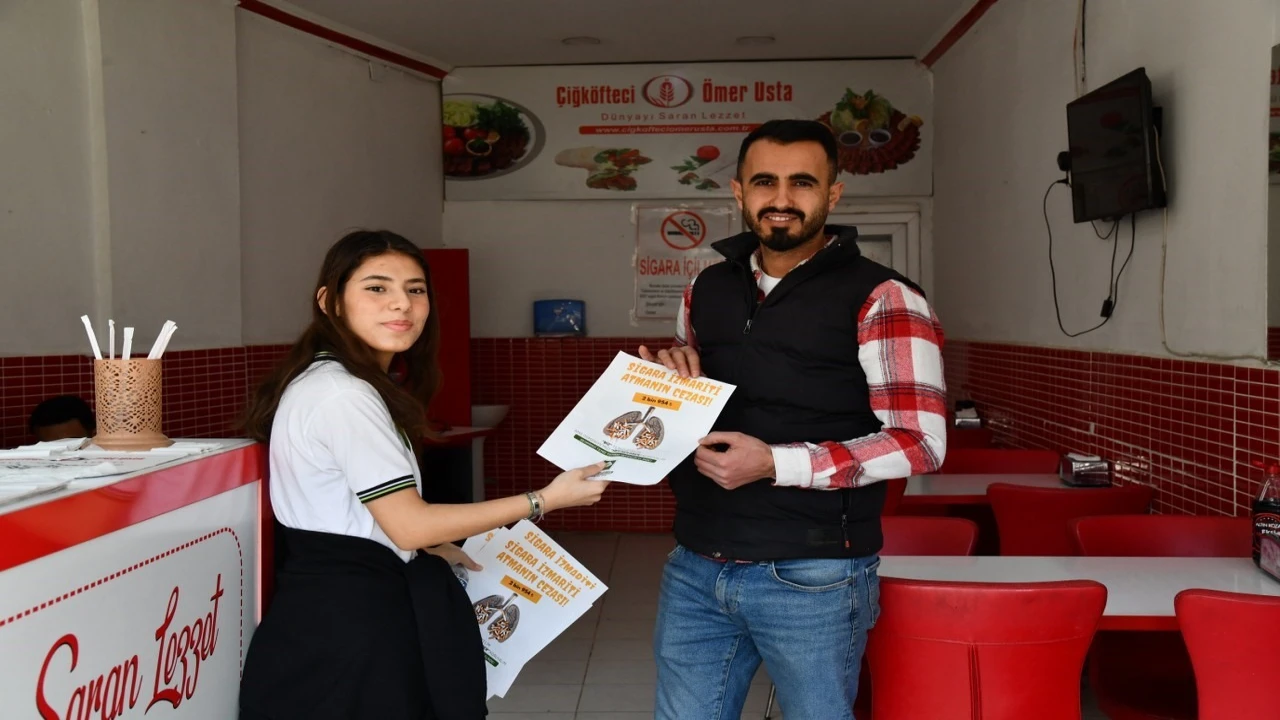 ÖĞRENCİLER DAĞITTIKLARI BROŞÜRLERLE SİGARA İZMARİTİ KİRLİLİĞİNE DİKKAT ÇEKTİ