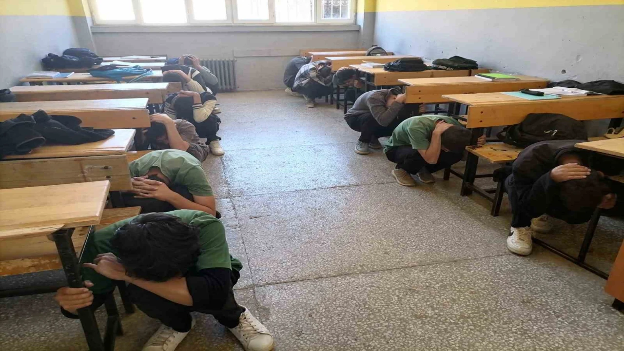 ADANA’NIN KOZAN İLÇESİNDE MİLLİ EĞİTİM BAKANLIĞININ "AFETLER VE DAYANIKLILIK AYI" ETKİNLİKLERİ KAPSAMINDA, ŞEHİT ARDA CAN MESLEKİ VE TEKNİK ANADOLU LİSESİ ÖĞRENCİLERİ DEPREM VE YANGIN TATBİKATI GERÇEKLEŞTİRDİ. ÖĞRENCİLER PANİK OKUL İÇİNDE İZDİHAMA NEDEN OLMADAN OKULU SAĞLIKLA TERK ETTİLER.
