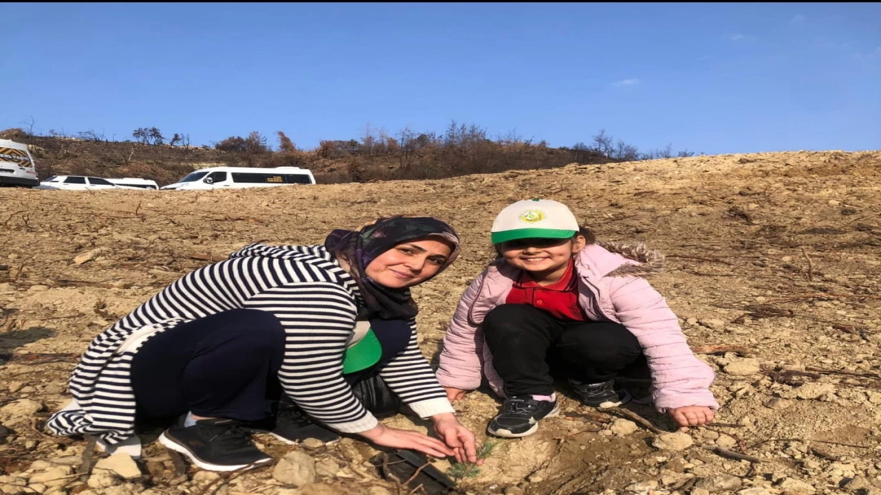 Etkinliğe çocuğuyla birlikte katılan velilerden Yasemin Akpınar ise "Birçok büyük orman yangını yaşandı. Bu yangınlardan sonra çocuklarımıza yeşil bir vatan bırakmak için biz de kızımla etkinliğe katıldık. Doğayı koruma dersinin yanan alanda işlenmesi çok anlamlı. Çocuklarımız hem kendi fidanlarını dikiyorlar hem de arkadaşlarıyla birlikte yanan ormanı yeniden yeşertiyorlar" diye konuştu.