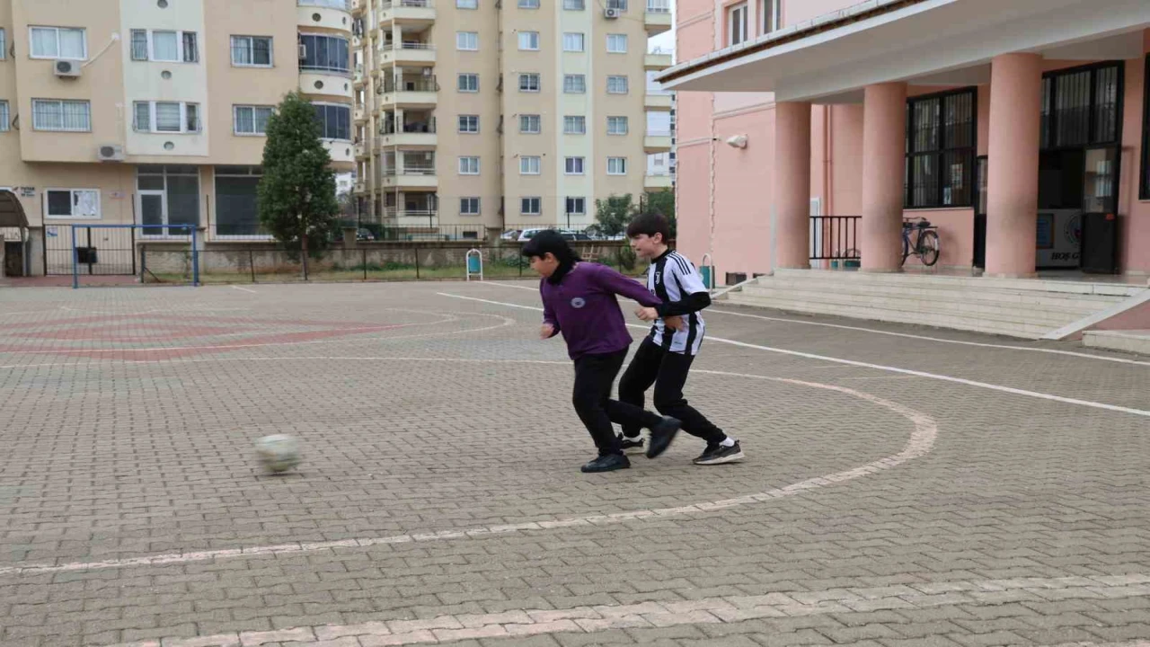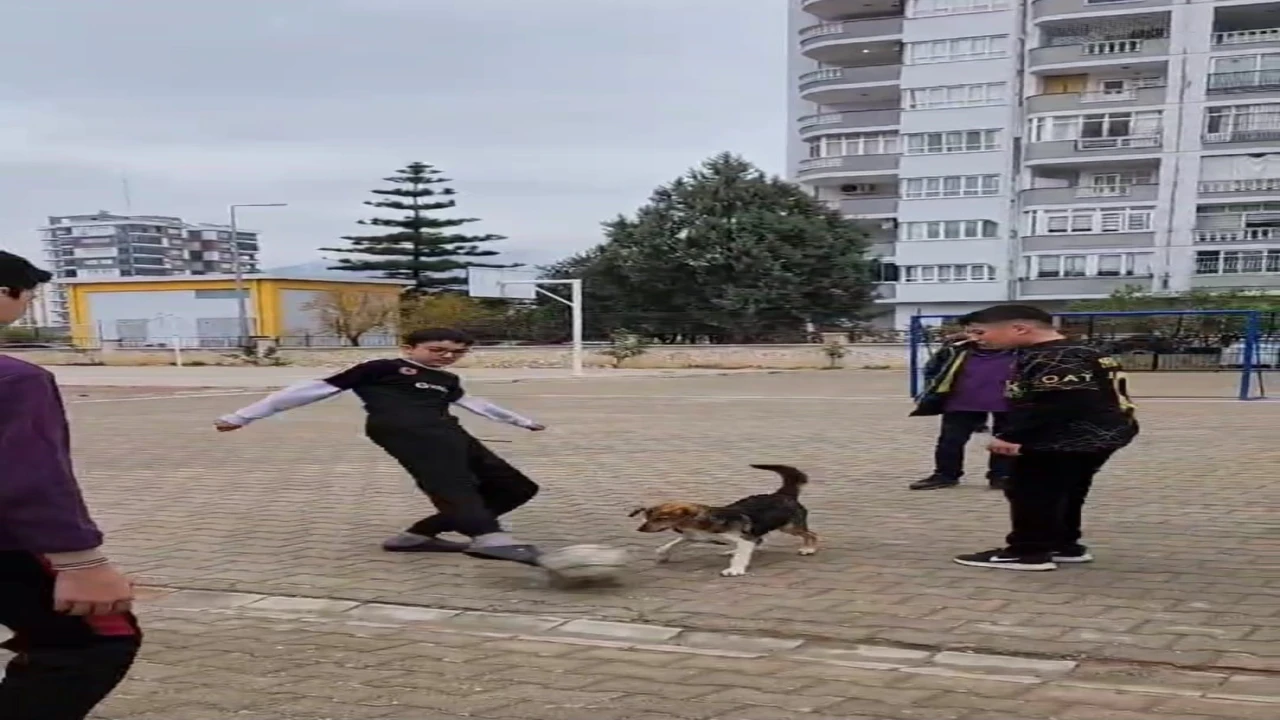 ADANA’NIN KOZAN İLÇESİNDE NECİP FAZIL KISAKÜREK İMAM HATİP ORTAOKULUNDA OKUL BAHÇESİNDE ÖĞRENCİLERİN FUTBOL OYUNUNA ORTAK OLAN KÖPEK ÖĞRENCİLERİ ŞAŞIRTTI.