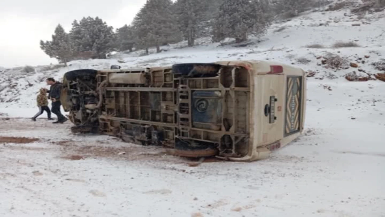 Mersin Erdemli’de öğrencileri taşıyan servis minibüsü karlı ve buzlu yolda kayarak devrildi. Korku dolu anlar bir öğrencinin cep telefonu kamerasına yansıdı.