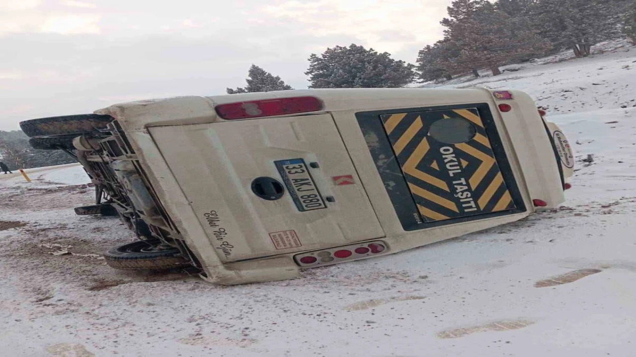 Kaza, saat 17.30 sıralarında ilçeye bağlı 1600 rakımda bulunan Sorgun Mahallesi sınırlarında meydana geldi. Alınan bilgiye göre, Murat S. (34) idaresindeki 33 AKJ 880 plakalı servis minibüsü, karlı buzlu yolda kayarak devrildi. Yan yatan minibüste bulunan meslek lisesinde eğitim gören 6 öğrenci ile sürücü kazadan yara almadan kurtuldu. Durumun bildirilmesi üzerine bölgeye jandarma ve sağlık ekipleri sevk edildi. Korku yaşayan öğrencilerin sağlık kontrollerinin yapıldığı olumsuz bir durum olmadığı öğrenildi.