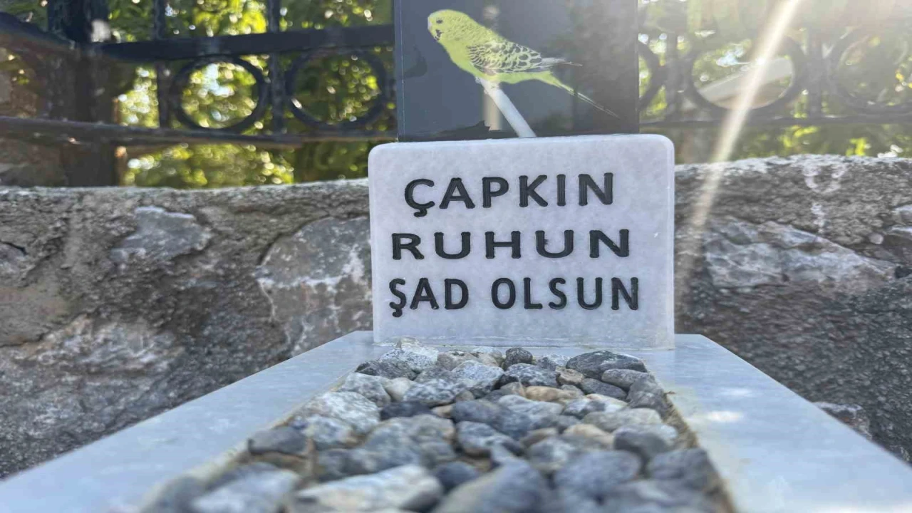 Çelik ailesinin yaklaşık 6 yıldır evlerinde beslediği muhabbet kuşu öldü. Ailenin kararı üzerine muhabbet kuşuna mermerden mezar yaptılar.