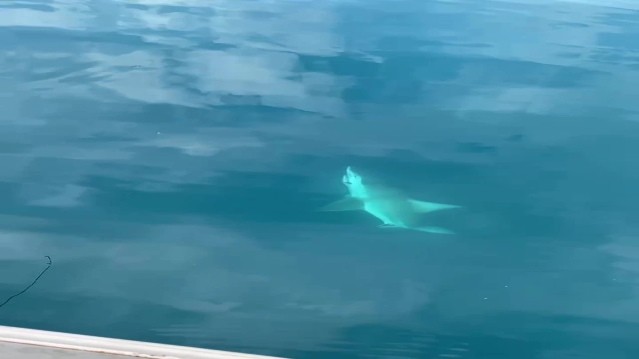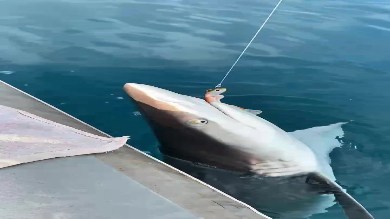 Oltaya köpek balığı takılınca korktular, ardından kurtarmak için çabaladılar