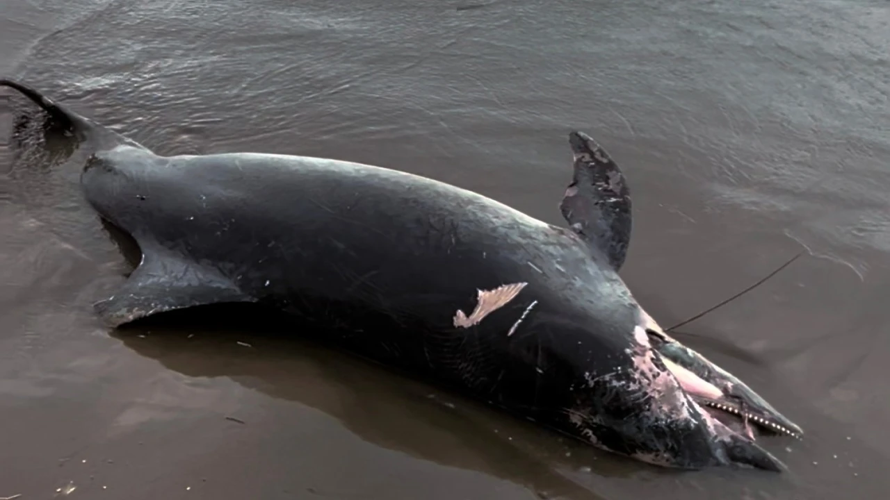 Adana’nın Karataş ilçesinde ölü yunus sahile vurdu.