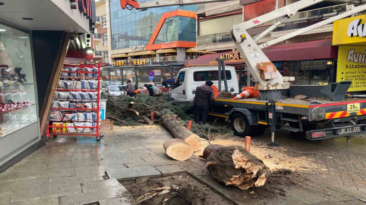 Isparta’da geçtiğimiz günlerde Kutlubey Mahallesi 1001. Sokak’ta kaldırım üzerindeki bir ağaç, kuvvetli rüzgâr nedeniyle yola devrildi. Olay anında cadde üzerindeki marketin sahibi Bilal Demir faciayı kıl payı atlattı. Şiddetli rüzgârın market önündeki cips standını yerinden oynattığını fark eden Demir, standı düzeltmek için dükkânın kapısına çıktı. Yağmur nedeniyle dışarı çıkmaktan vazgeçen Demir, kısa süreli tereddütten sonra standı yeniden düzeltmeye karar verdi. Demir, dışarı adım atmak üzereyken kaldırım üzerindeki ağaç büyük bir gürültüyle yola devrildi. Saniyelerle ölümden dönen Demir’in yaşadığı panik ve ağacın devrildiği anlar, marketin güvenlik kamerasına anbean yansıdı. Olayın ardından bölgede kısa süreli tedirginlik yaşanırken, belediye ekipleri devrilen ağacı bulunduğu yerden kaldırdı.