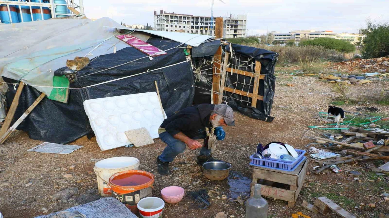 Antalya’da geçimini hurda malzeme toplayarak sağlayan bir kişi, 10 yıldır kedi ve köpeklerle iç içe yaşıyor. Yağmurlu bir günde yollarının kesiştiği köpeğinin ölümünden sonra da ayrılmamak için mezarını baraka içerisine yatağının başucuna yaptı.