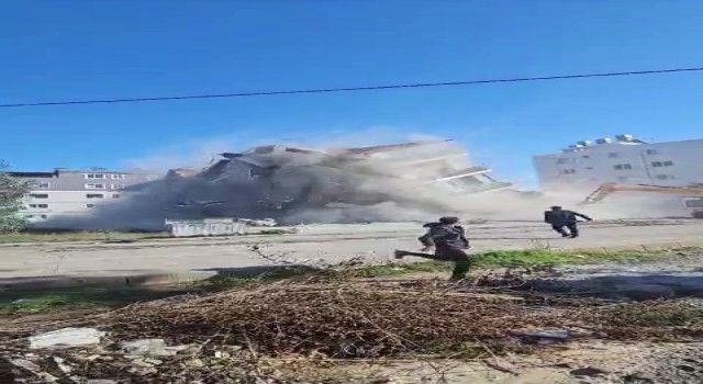 Kahramanmaraş merkezli depremlerde ağır hasar alan Hatay'da mahkeme süreci sona eren binaların yıkım ve enkaz kaldırma çalışmaları aralıksız sürüyor. Antakya ilçesi Akasya Mahallesi'nde bulunan 5 katlı apartman da iş makinesiyle kontrollü olarak yıkıldı.