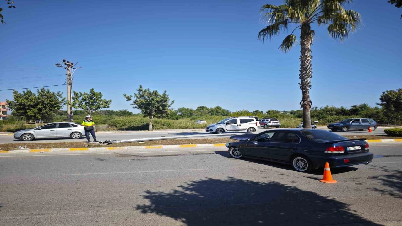 Antalya’nın Manavgat ilçesinde direksiyon hakimiyetini kaybeden araç sürücüsü önce refüje, ardından aydınlatma direğine çarparak durabildi.