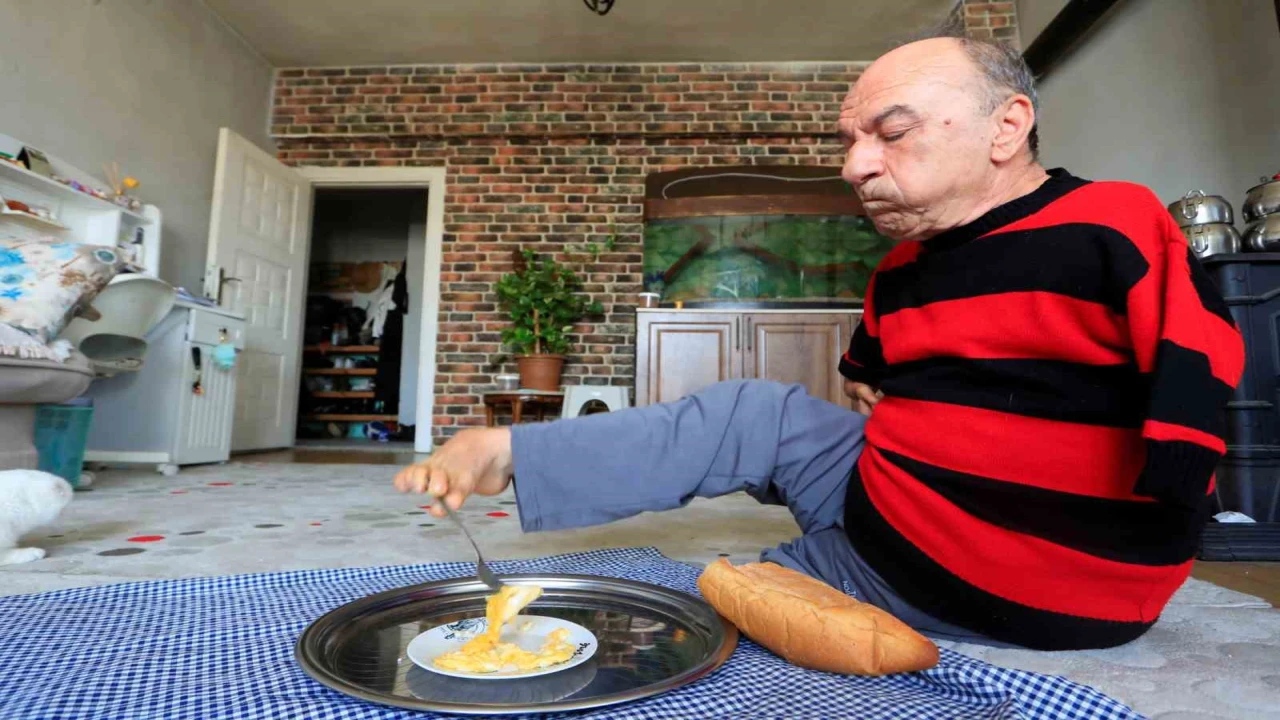 Antalya’da doğuştan elleri olmayan 69 yaşındaki 2 çocuk babası Mehmet Temel, ayaklarını adeta el gibi kullanarak hayatını sürdürüyor. Günlük yaşamda birçok işini ayaklarıyla gerçekleştiren Temel, azmiyle örnek oluyor.