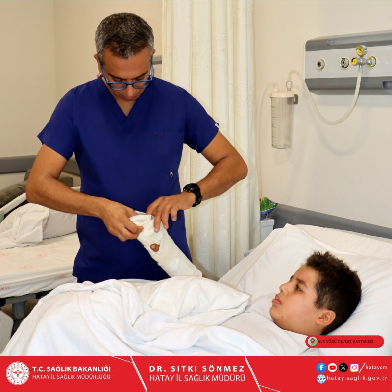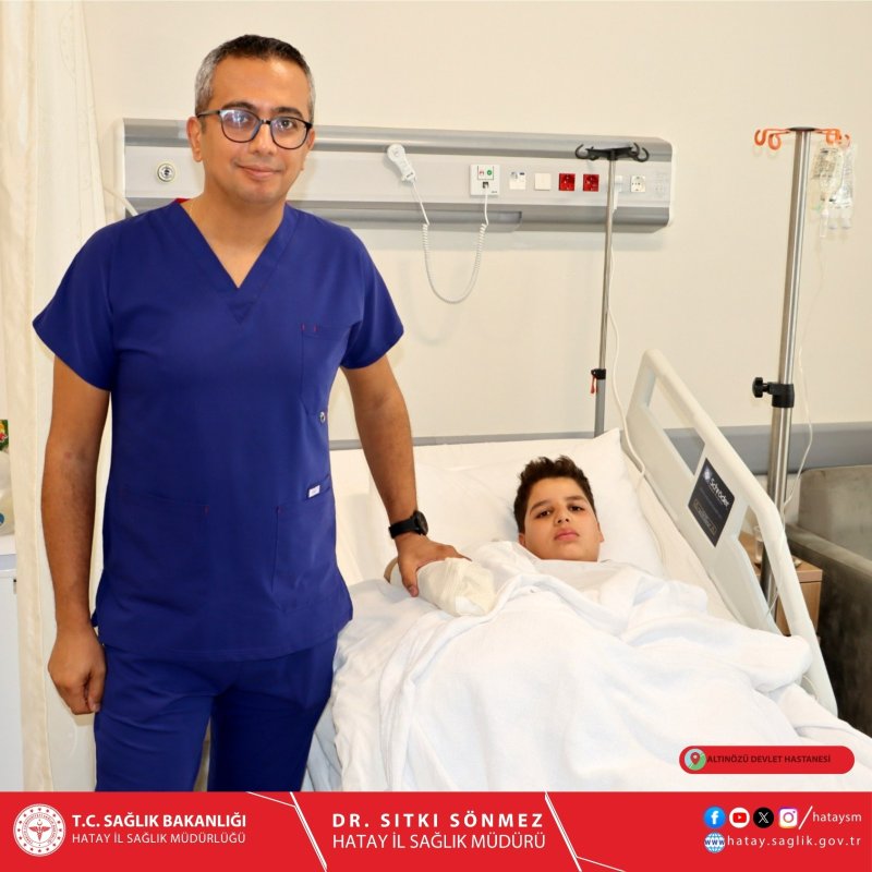 Hassa ilçesinden, spiral makinesinde sağ elinin ikinci ve üçüncü parmaklarının üst bölümünden kopma şikayetiyle 112 Acil Servis tarafından gece saatlerinde Altınözü Devlet Hastanesine getirilen 13-14 yaşlarındaki bir çocuk, Ortopedi ve Travmatoloji Uzmanı Op. Dr. Mehmet Özer Dökmeci tarafından yapılan başarılı operasyonla yeniden sağlığına kavuştu.