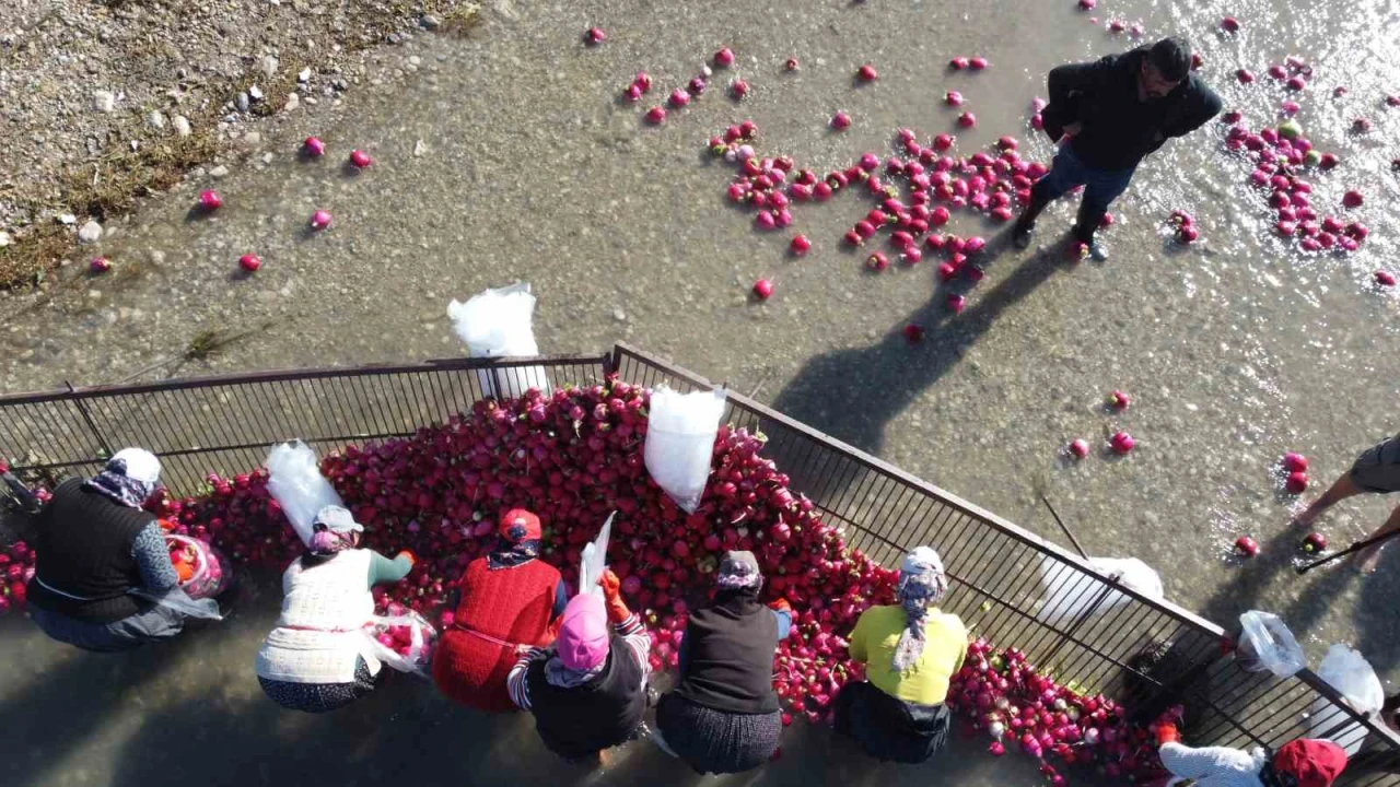 Turpun tarladan sofraya uzanan yolculuğunu anlatan kadınlar, "Turp tarladan geliyor, burada suya dökülüyor, yıkanıyor. Biz de torbalama işlemini yapıyoruz. İstanbul, Ankara, Adana, Diyarbakır nereye istenirse oraya gidiyor. Biz de evde limonla, pul biberle tüketiyoruz, çok şifalı" diye konuştu.