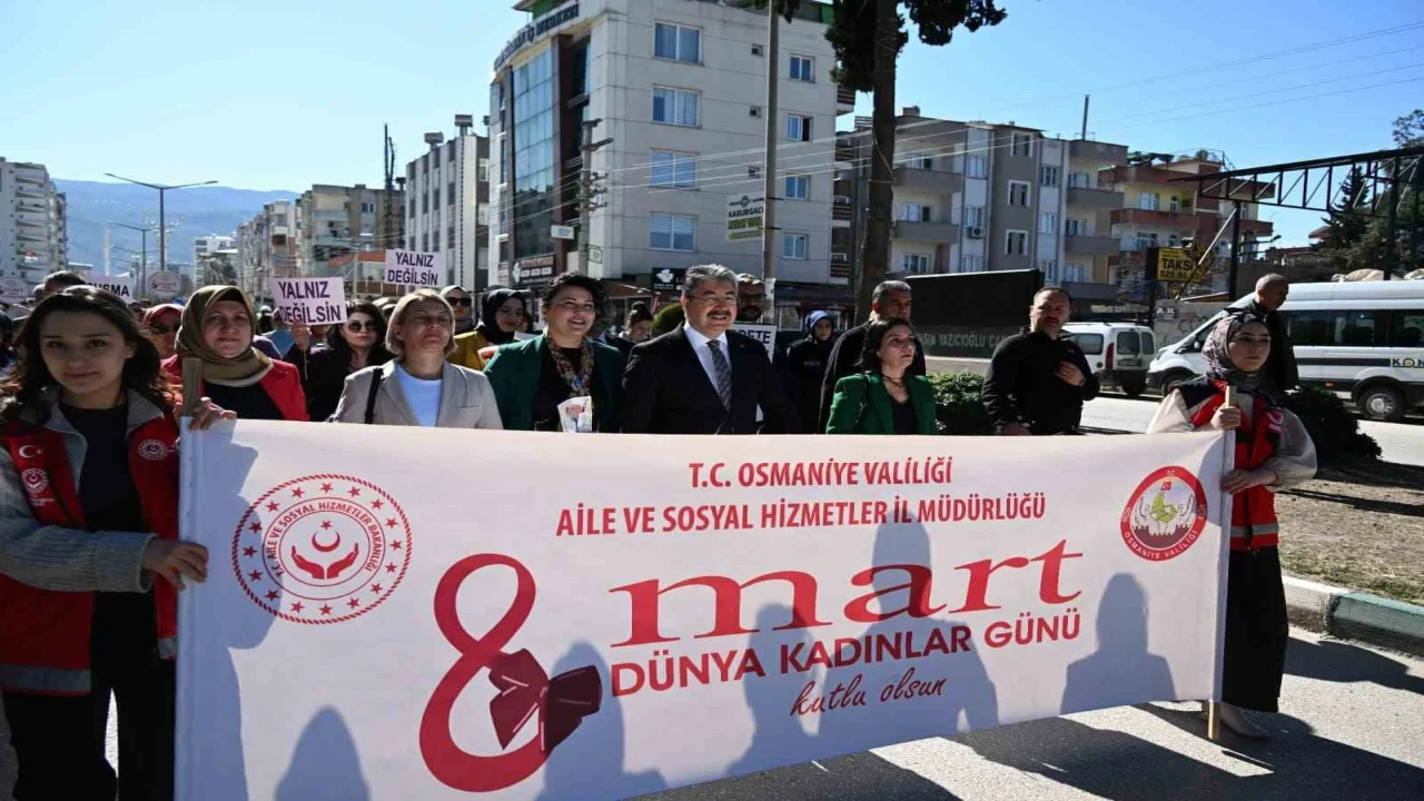Osmaniye Muhsin Yazıcıoğlu Bulvarında düzenlenen yürüyüşe Osmaniye Valisi Erdinç Yılmaz, Aile ve Sosyal Hizmetler İl Müdürlüğü personeli, Osmaniye Barosu, Siyasi Partilerin Kadın Kolları üyeleri ve Sivil Toplum Kuruluşu temsilcileri katıldı. Yürüyüş sonrası 8 Mart Dünya Kadınlar Günü dolayısıyla kadınlar tarafından hazırlanan resimlerin ve el işi ürünlerin bulunduğu sergi açılışı gerçekleştirildi.