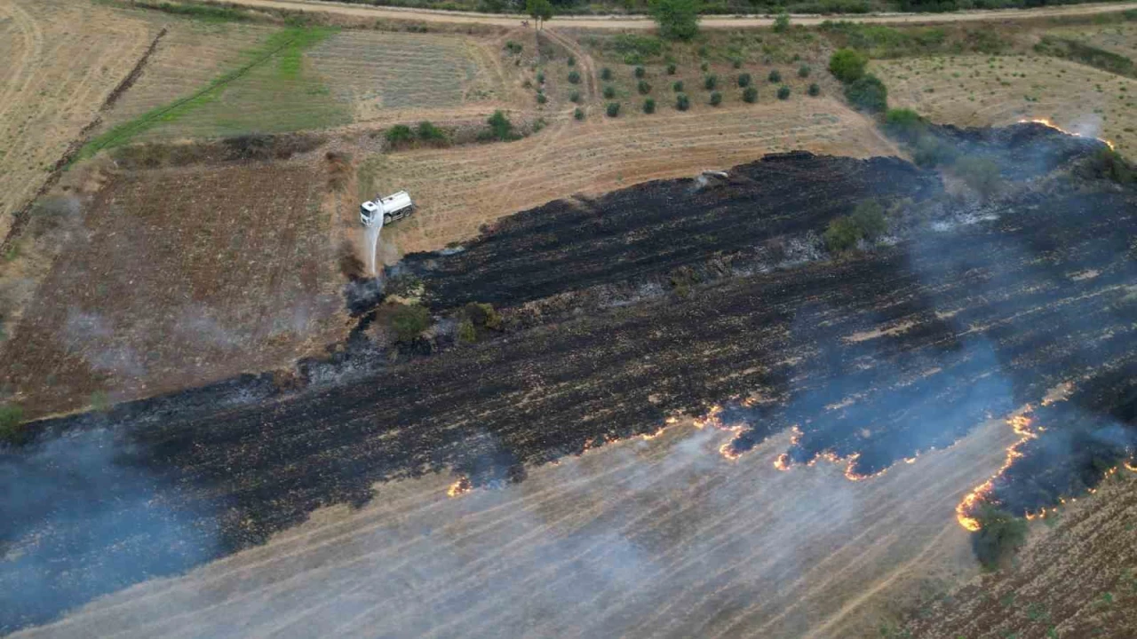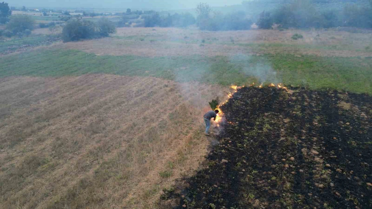 Osmaniye’de çıkan anız yangını vatandaşların dikkati ve itfaiye ekiplerinin hızlı müdahalesiyle ormanlık alana sıçramadan söndürüldü. O anlar dron kamerasıyla görüntülendi.