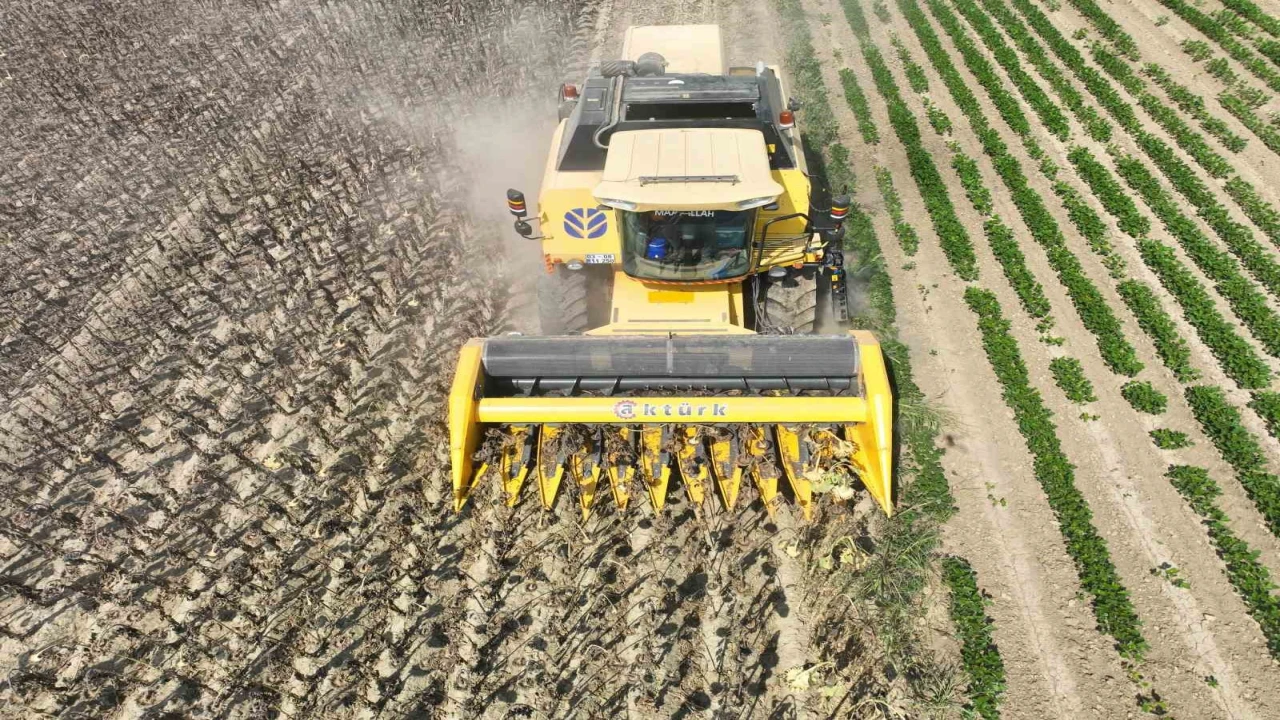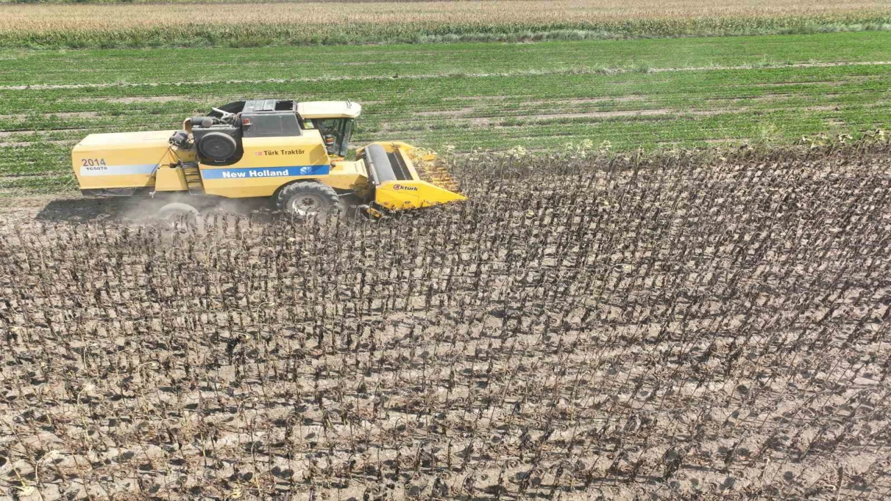 Osmaniye’de alternatif tarım ürünü olarak ekimi yapılan yağlık ayçiçeğinde hasat dönemi başladı.