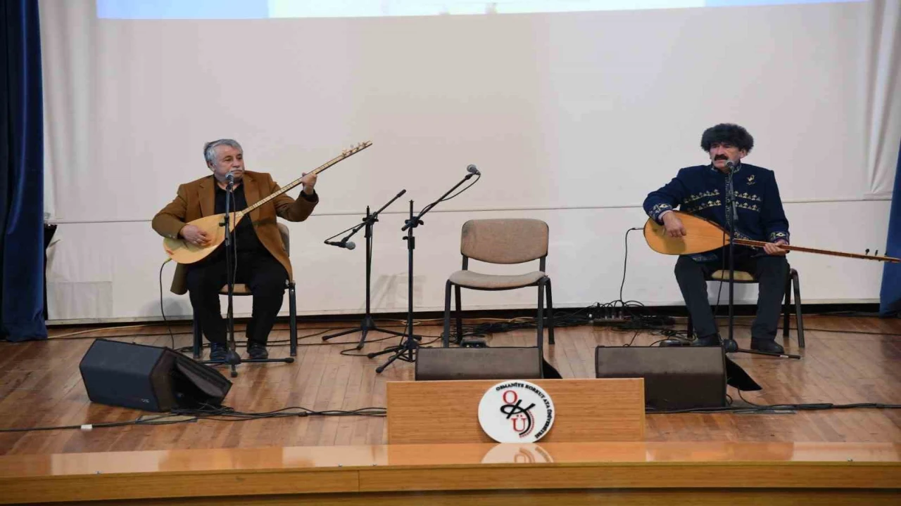Osmaniye Kokut Ata Üniversitesi (OKÜ) 15 Temmuz Şehitler Amfisi’nde, Türk kültürünün kadim geleneklerinden olan aşıklık geleneğinin doğru bir şekilde gelecek kuşaklara aktarılması amaçlı düzenlenen program, OFAD Başkanı Abdullah Gizlice ve Aşık Temel Turabi’nin karşılama türküleri ile başladı. Programa, Garnizon Komutanı ve 12’nci Komando Tugay Komutan Vekili Topçu Albay Hakan Kocabaş, Belediye Başkan Yardımcısı Melih Loş, Sait Başkurt, İl Jandarma Komutanı Jandarma Albay Şener Keytez, MHP İl Başkanı Yusuf Çomu, Merkez İlçe Başkanı Bilal Çenet, OTSO Yönetim Kurulu Başkanı Devrim Murat Aksoy ve öğrenci ve davetli katıldı. Etkinlikte, Sarıkamış ağıtları ile şehitler anıldı. Kahramanmaraşlı Aşık Bekir Kurt ve Aşık Celal Çaçan türkülerini seslendirdiği etkinlikte, Kahramanmaraşlı Öksüz Ozan, Erzurum’dan Aşık Baki Çetin ve Adanalı Aşık Eyyubi kahramanlık şiirlerini okuduktan sonra, atışma yaptılar. Salondakiler, aşıkların türkülerine alkışları ile eşlik etti. Ercişli Aşık Ahmet Poyrazoğlu türkülerini okudu. Aşık Kul Nuri ve Aşık Turabi ile birlikte atışmaları dinlendi. Etkinlik, Kazakistanlı Aşık Malika’nın, Kazakistan’ın milli çağlısı, Türk halklarının kadim geleneksel aleti olan çift telli dombra eşliğinde türkülerini seslendirmesi ile sona erdi.